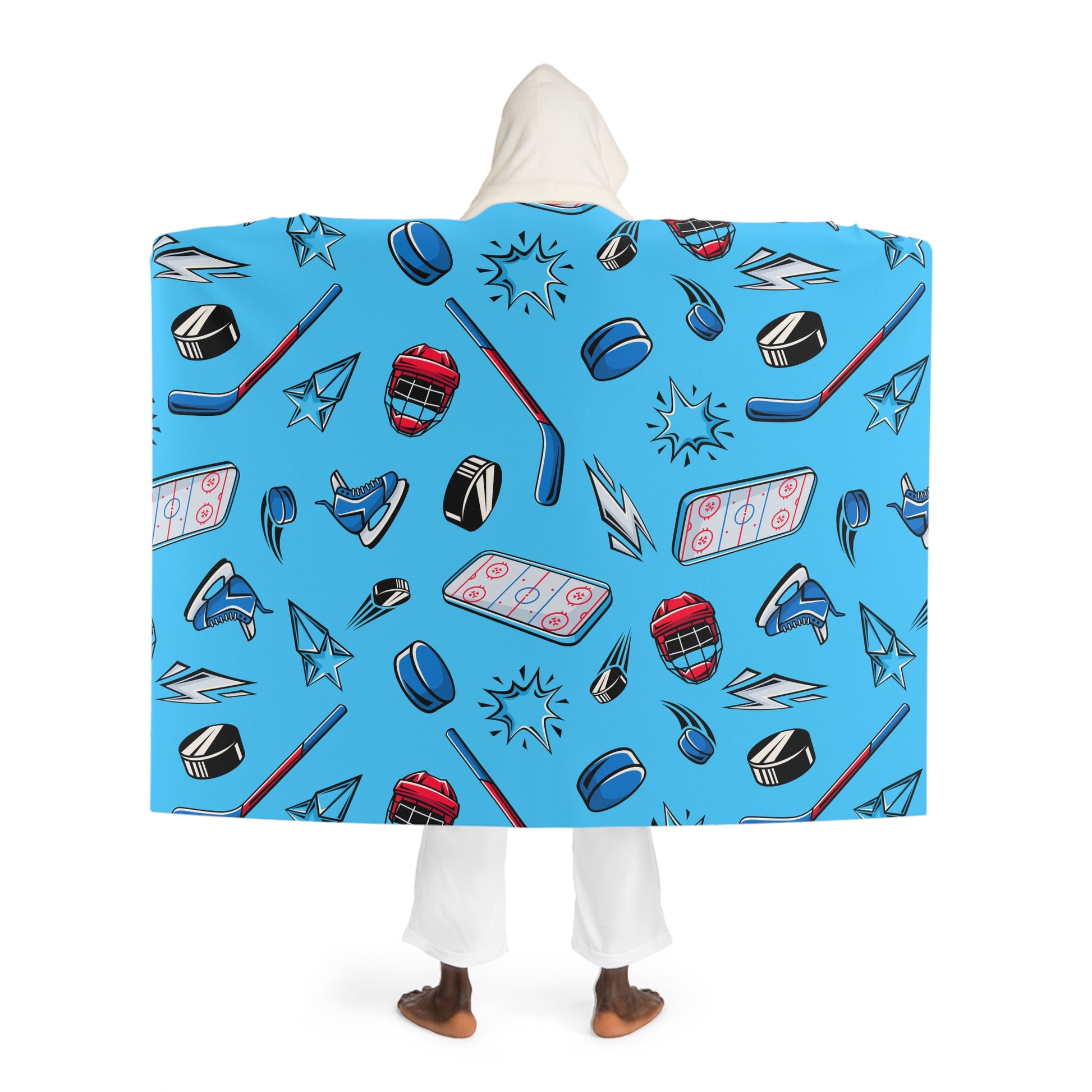 Wrap yourself in a cozy, wearable hug that brings color and comfort to quiet evenings and late-night gaming sessions. This hooded sherpa fleece drapes generously, the plush cream sherpa hood framing your face while the printed outer shows playful, hockey inspired POP pattern. It settles like a soft blanket around your shoulders and lets you move freely—perfect for settling onto the couch, pacing through your creative flow, or stepping out to the porch with warm hands tucked inside. The fabric’s quick-dry, durable polyester keeps the design vivid through everyday use, and the slightly oversized cut lets it layer over pajamas or a hoodie without feeling restrictive. It feels like a familiar nook: warm, slightly indulgent, and a little bit nostalgic—great for nights when you want comfort with personality, game nights with friends, or quiet mornings chasing the last cup of hot chocolate.