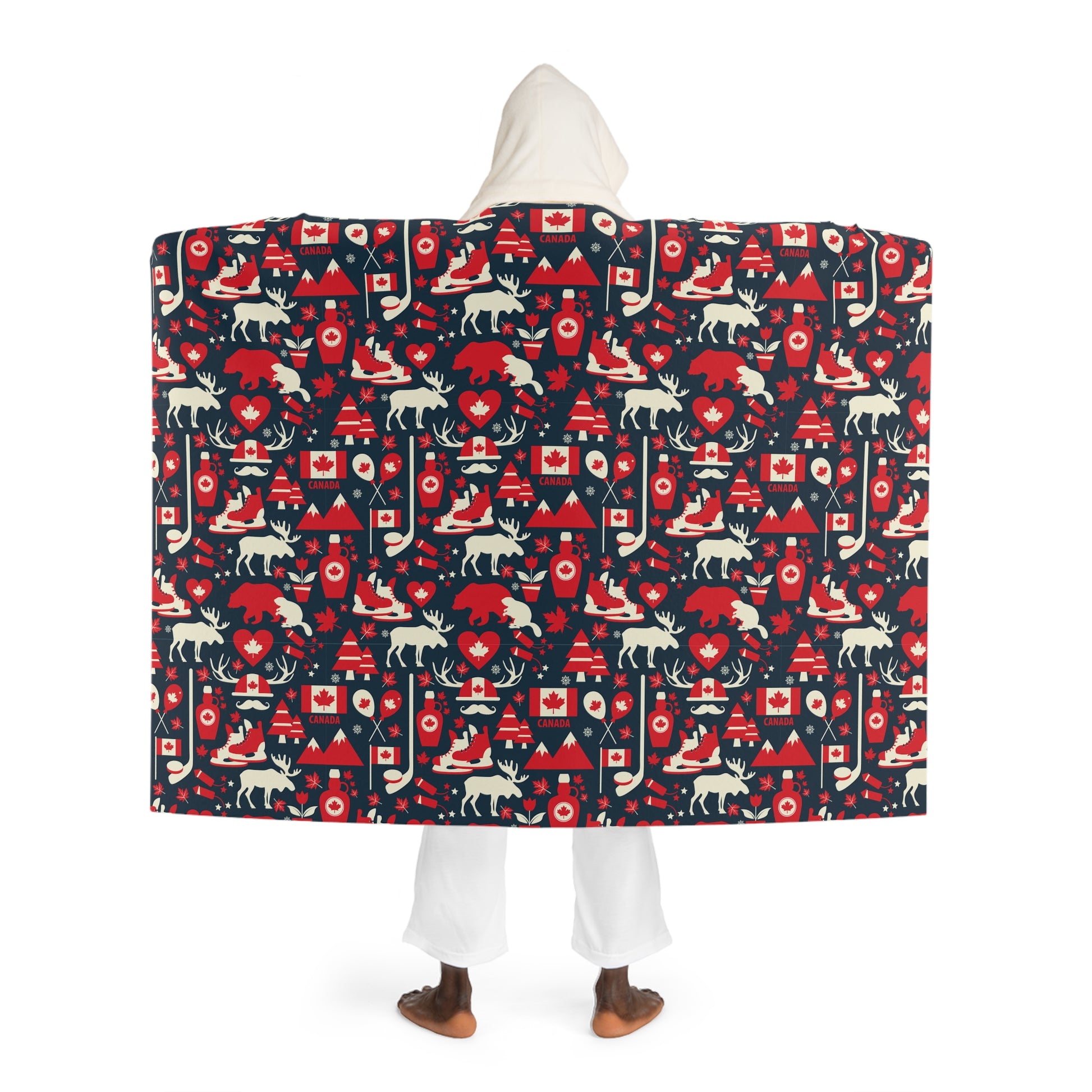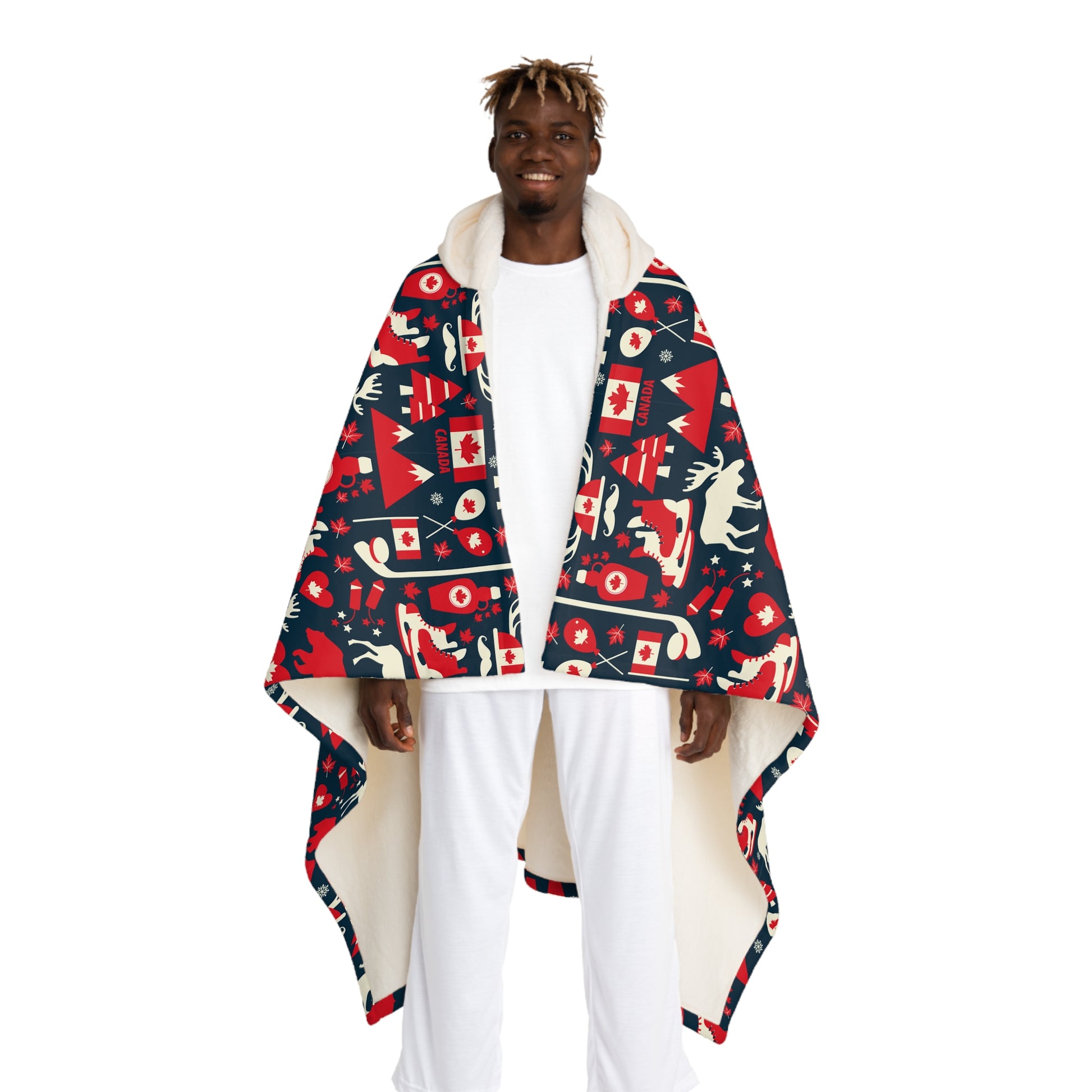Wrap yourself in a cozy, wearable hug that brings color and comfort to quiet evenings and late-night gaming sessions. This hooded sherpa fleece drapes generously, the plush cream sherpa hood framing your face while the printed outer features our fan favorite Oh Canada! pattern. It settles like a soft blanket around your shoulders and lets you move freely—perfect for settling onto the couch, pacing through your creative flow, or stepping out to the porch with warm hands tucked inside. The fabric’s quick-dry, durable polyester keeps the design vivid through everyday use, and the slightly oversized cut lets it layer over pajamas or a hoodie without feeling restrictive. It feels like a familiar nook: warm, slightly indulgent, and a little bit nostalgic—great for nights when you want comfort with personality, game nights with friends, or quiet mornings chasing the last cup of coffee.