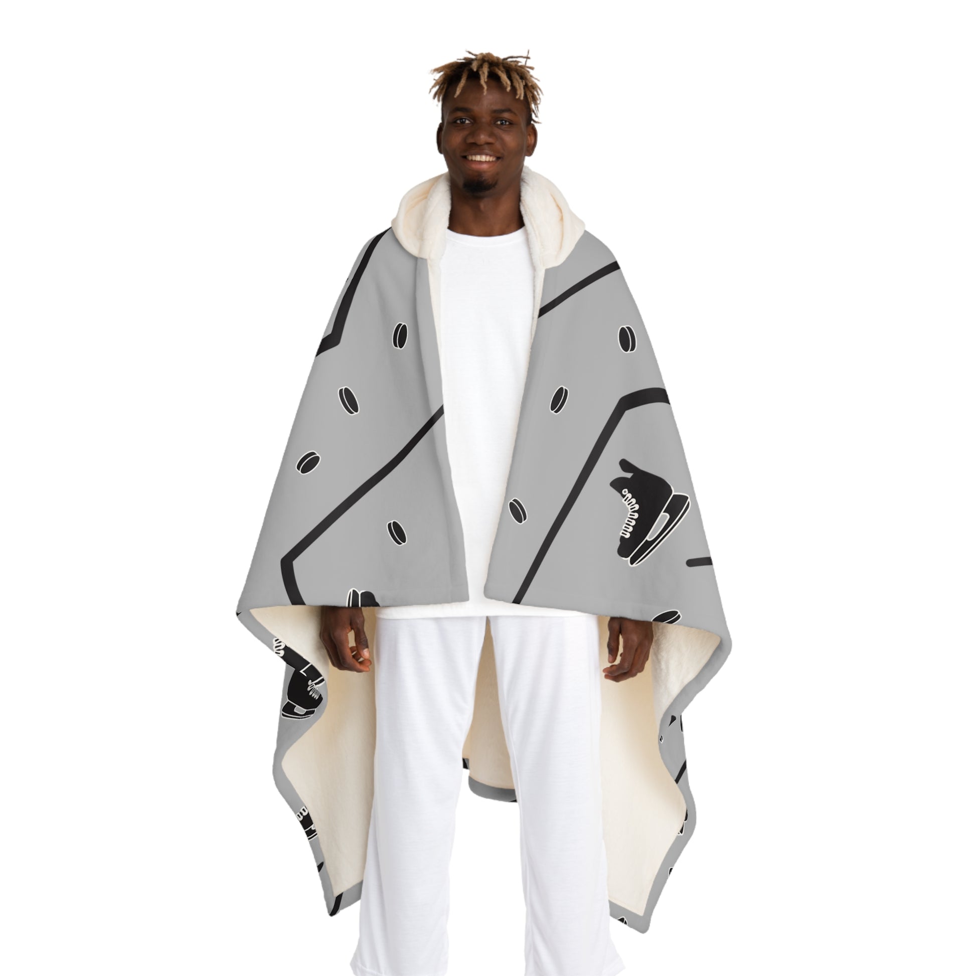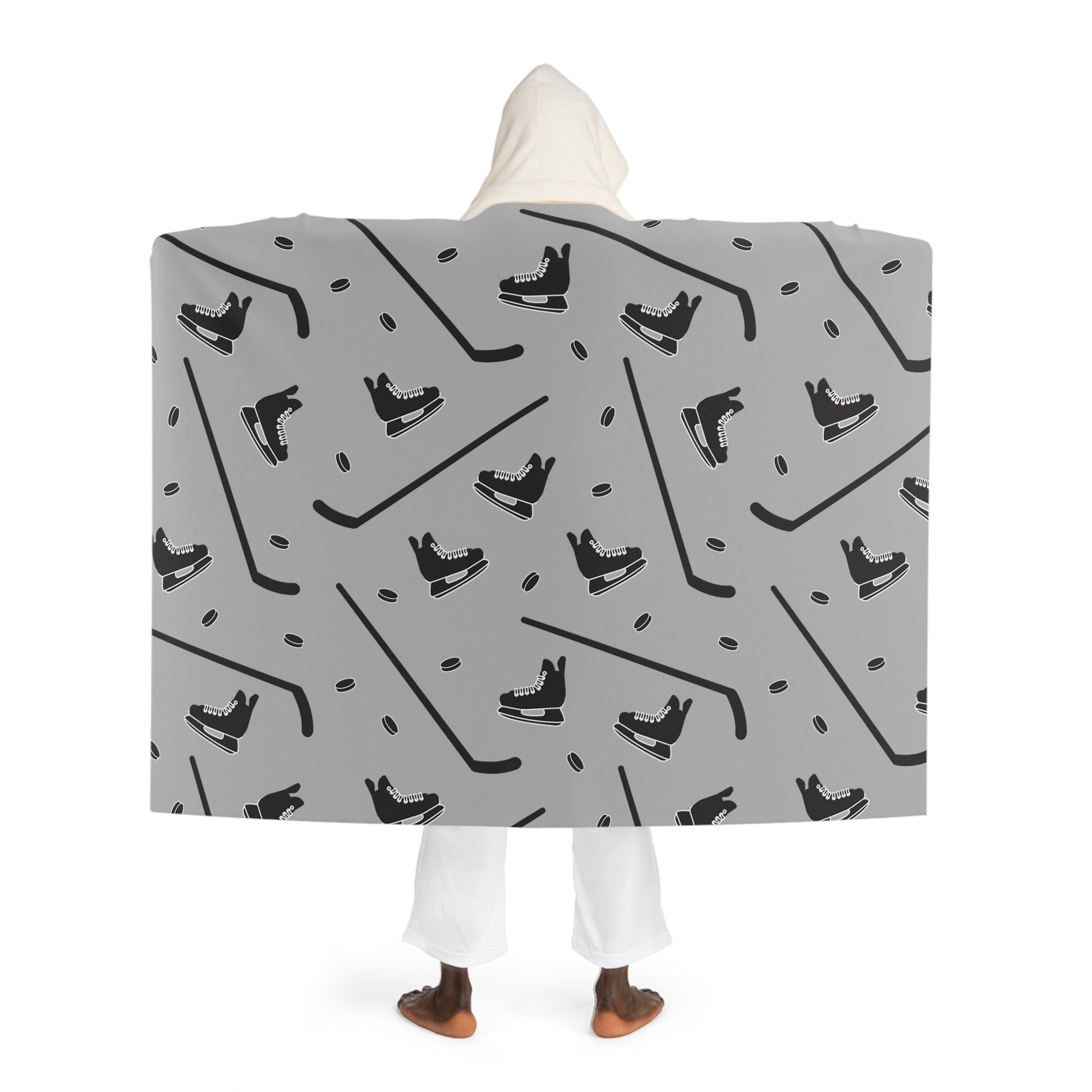 Wrap yourself in a cozy, wearable hug that brings color and comfort to quiet evenings and late-night gaming sessions. This hooded sherpa fleece drapes generously, the plush cream sherpa hood framing your face while the printed outer shows a classic inspired hockey skate and stick pattern. It settles like a soft blanket around your shoulders and lets you move freely—perfect for settling onto the couch, pacing through your creative flow, or stepping out to the porch with warm hands tucked inside. The fabric’s quick-dry, durable polyester keeps the design vivid through everyday use, and the slightly oversized cut lets it layer over pajamas or a hoodie without feeling restrictive. It feels like a familiar nook: warm, slightly indulgent, and a little bit nostalgic—great for nights when you want comfort with personality, game nights with friends, or quiet mornings chasing the last cup of coffee.